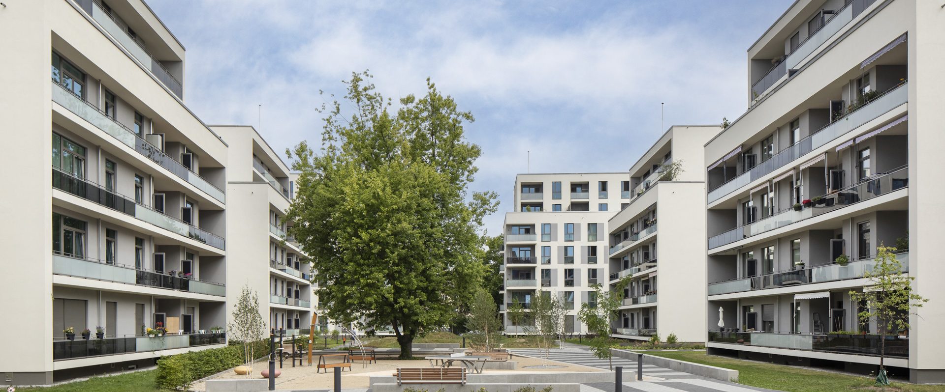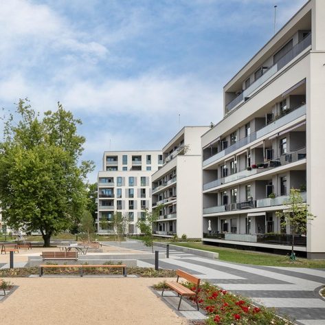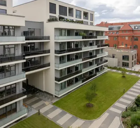 Beschreibung: Neubau eines modernen städtebaulichen Ensembles Aufgaben: Innenputz, Komplette WDVS und Außenfassaden